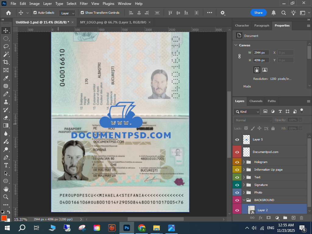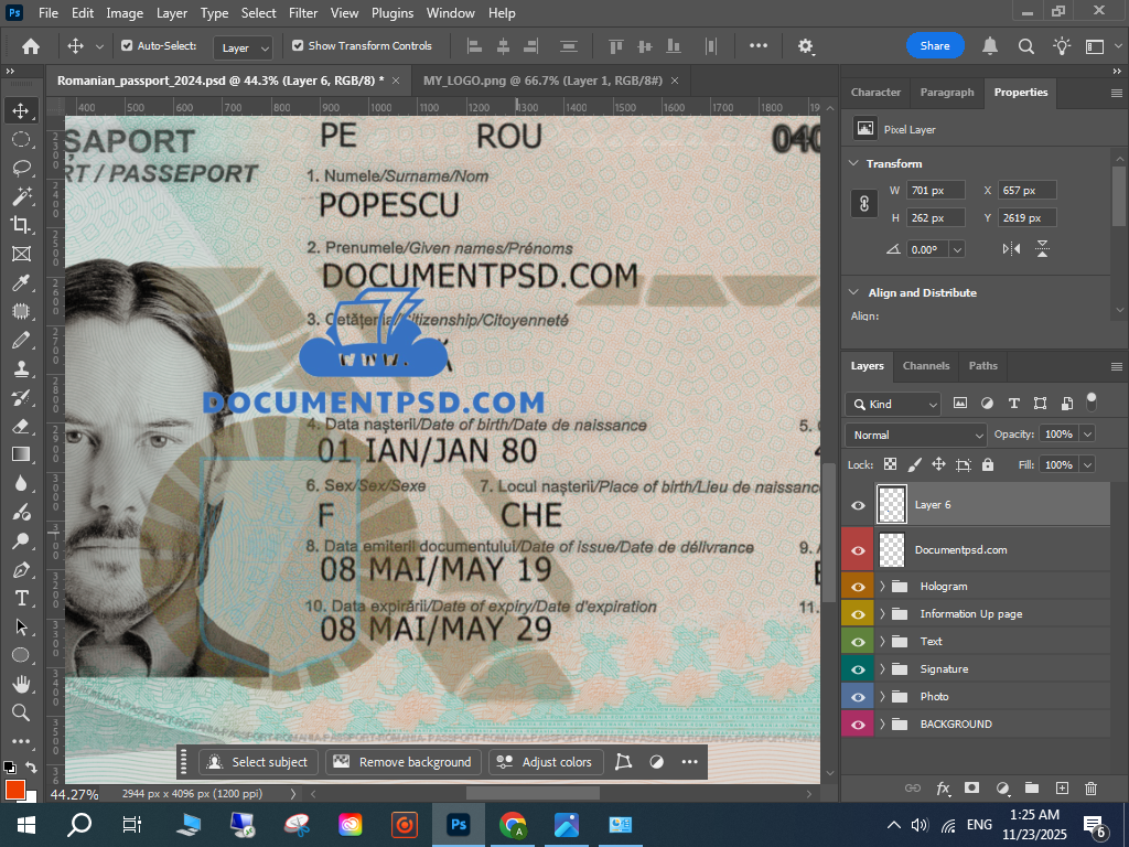 Photoshop Romanian passport PSD,