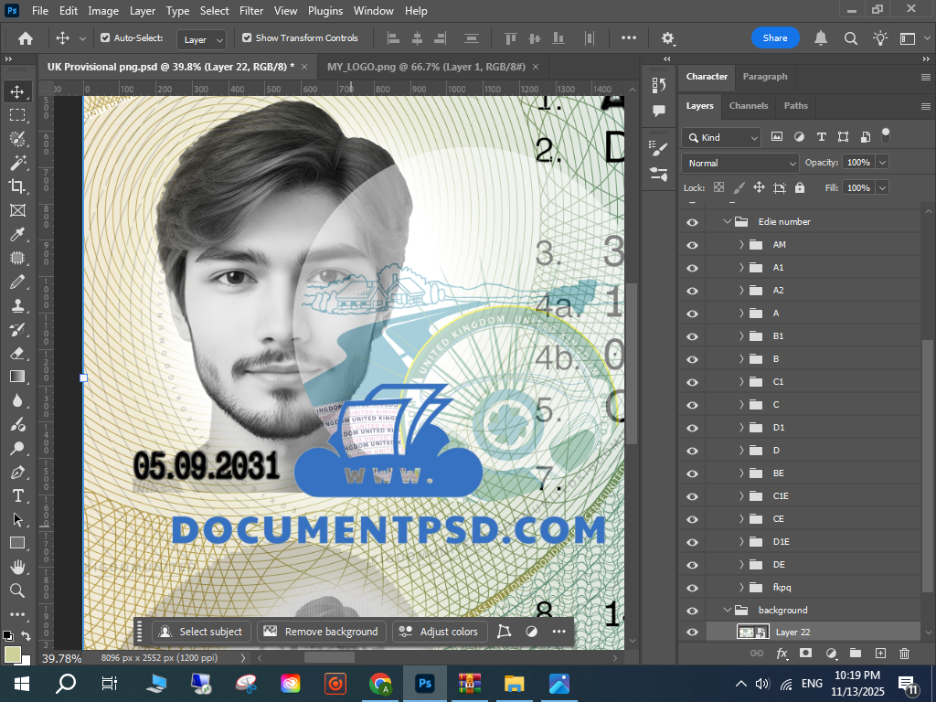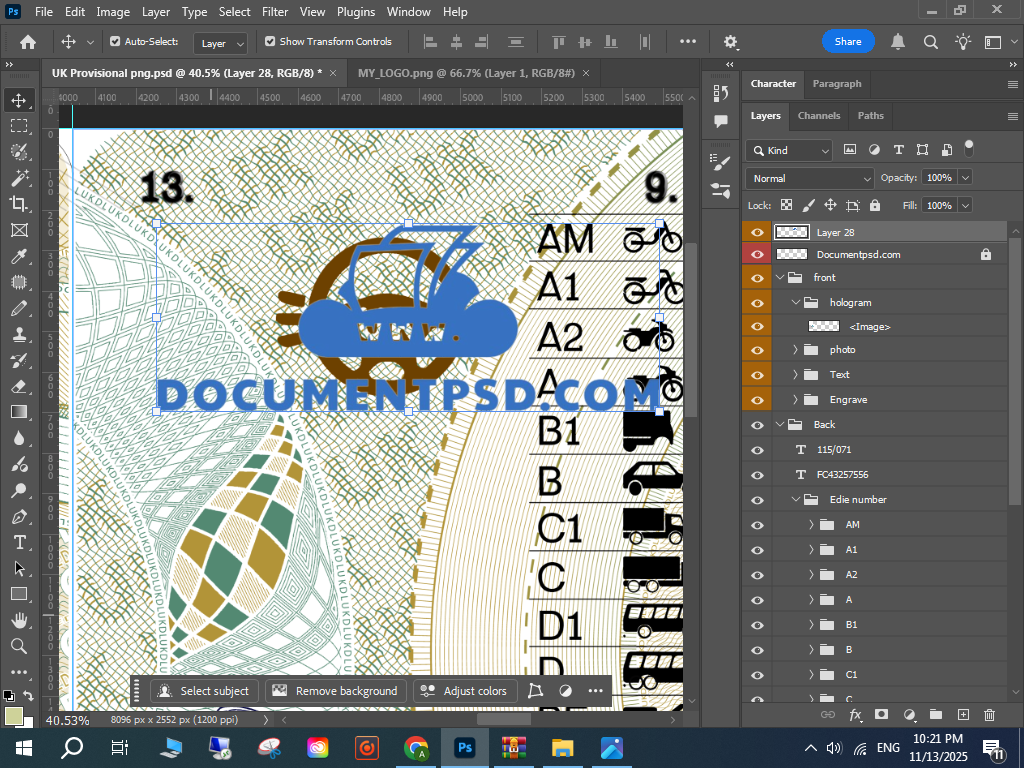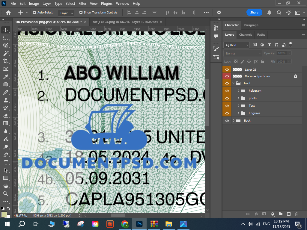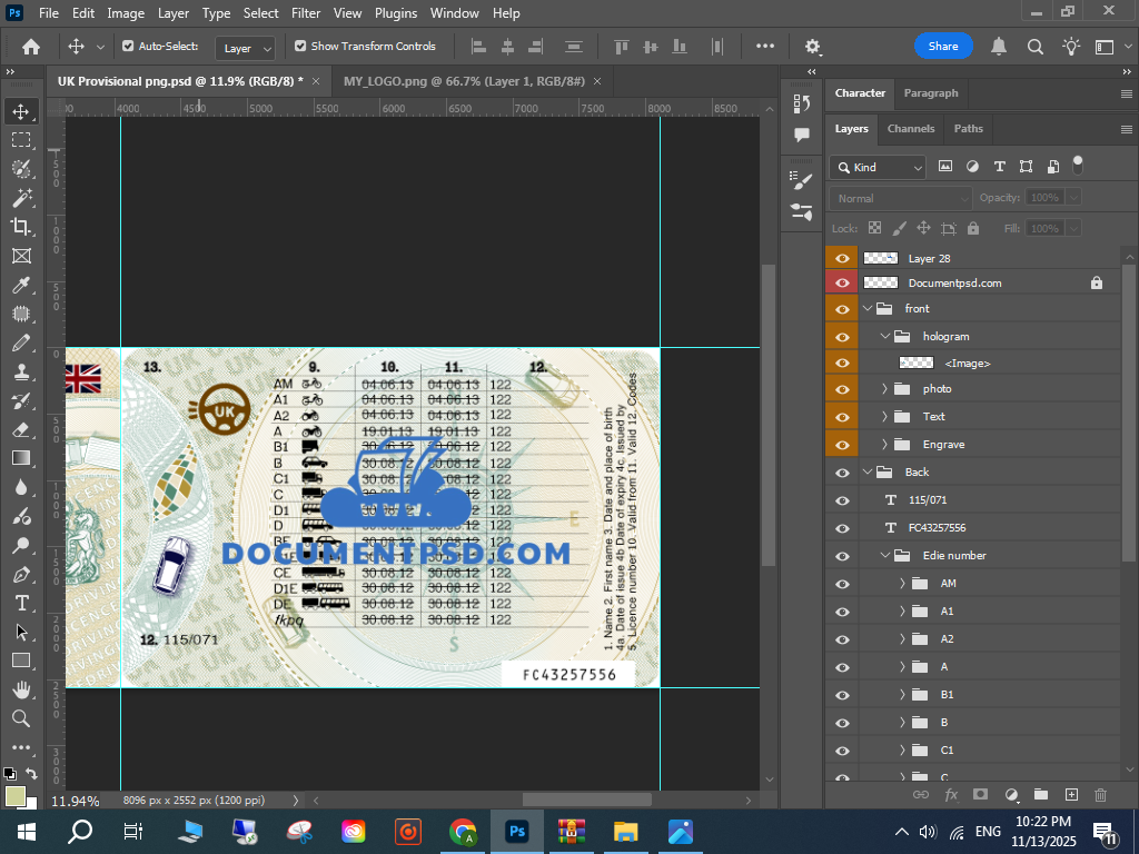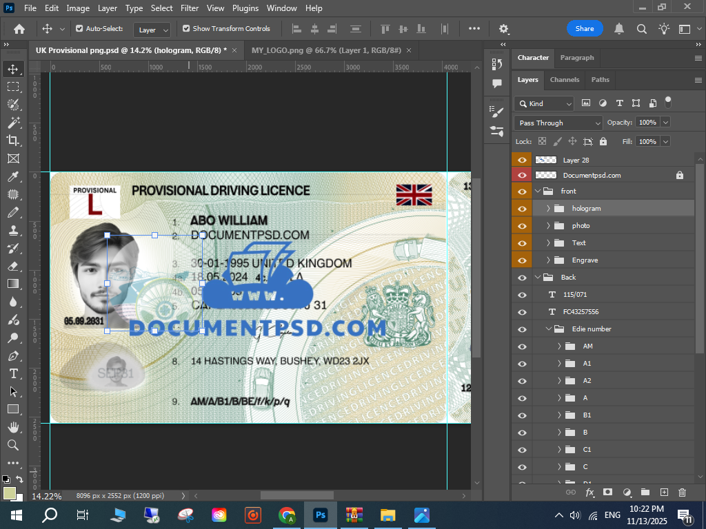 Photoshop UK licence template, UK provisional card template,