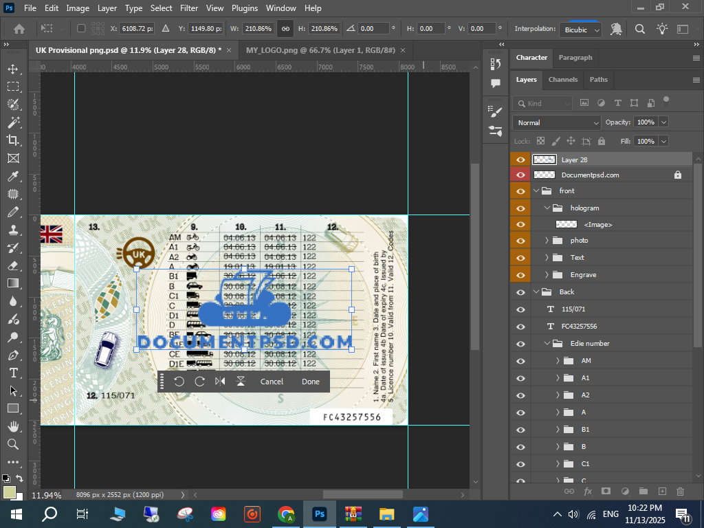 UK Provisional DL PSD, UK driving licence mockup, editable UK licence PSD,