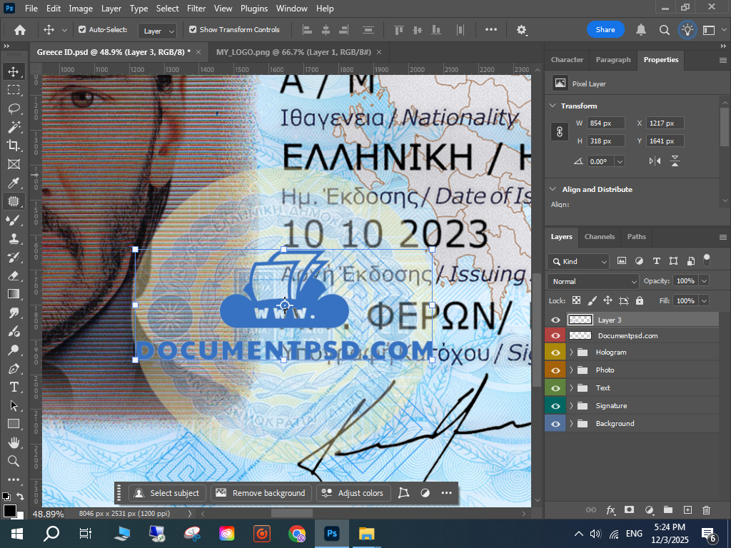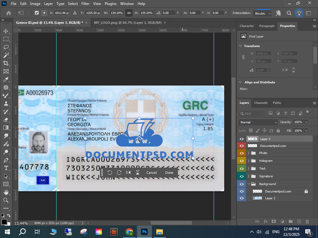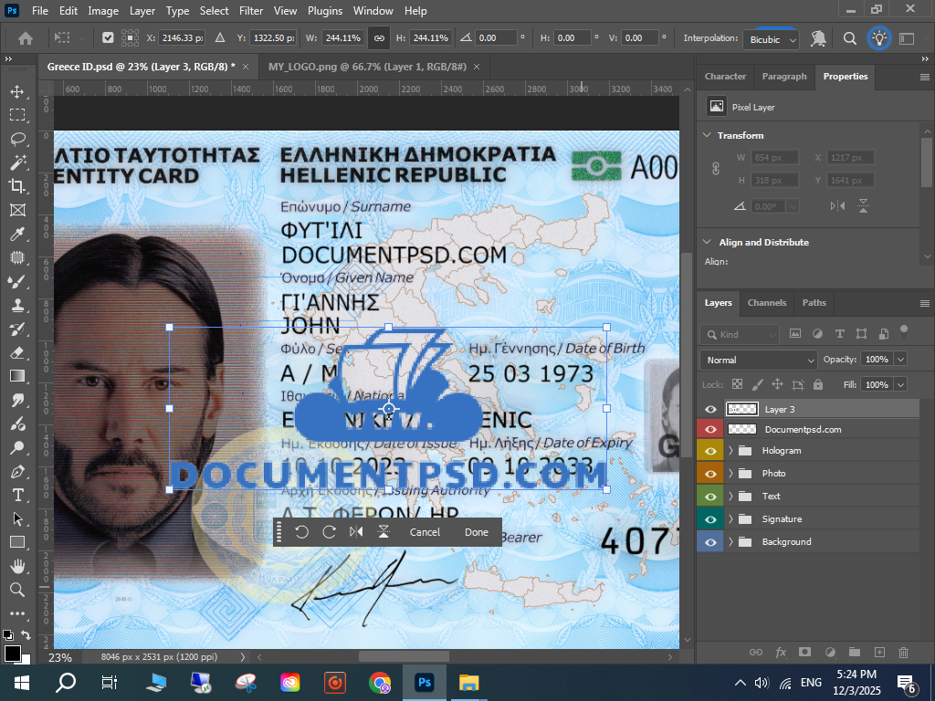 Download the Greece ID Card New PSD Template (Mockup Edition) created for graphic designers, Photoshop editors, and digital creators who need a realistic-style Greek ID layout for UI/UX projects, educational demonstrations, creative artwork, or professional design presentations.