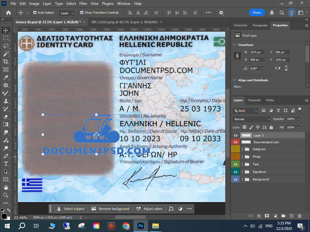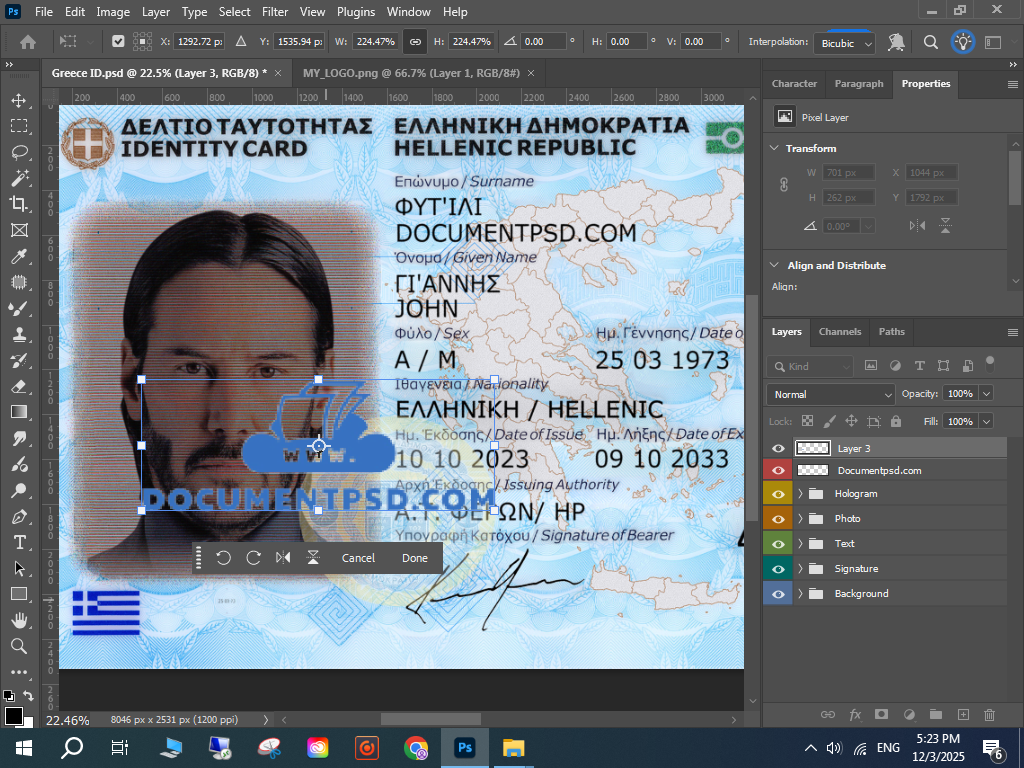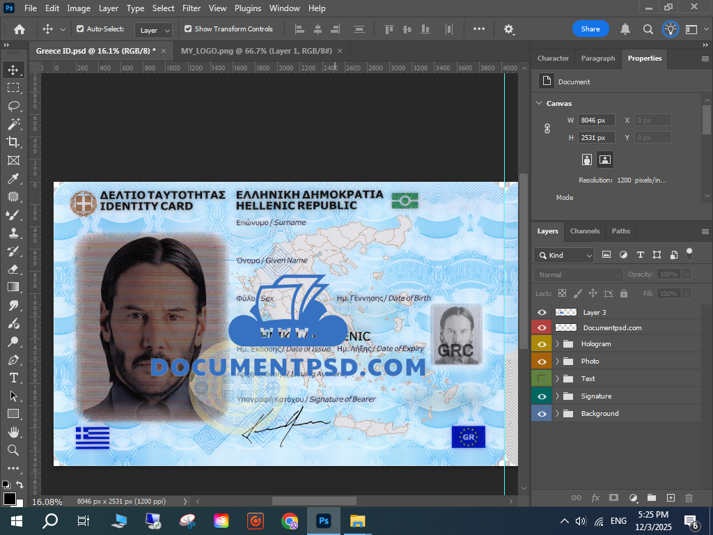 Download the Greece ID Card New PSD Template (Mockup Edition) created for graphic designers, Photoshop editors, and digital creators who need a realistic-style Greek ID layout for UI/UX projects, educational demonstrations, creative artwork, or professional design presentations.
