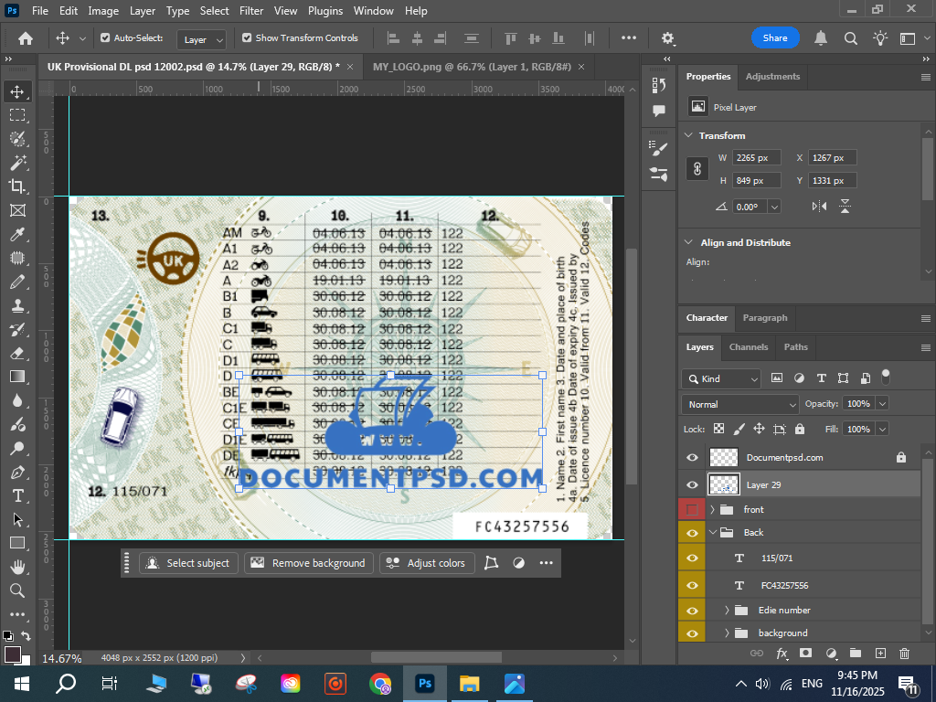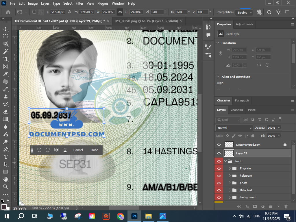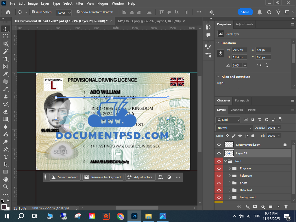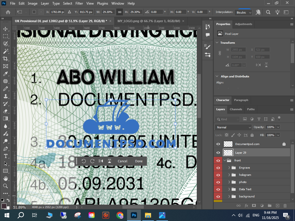 UK Provisional DL PSD, UK driving licence mockup, editable UK licence PSD,