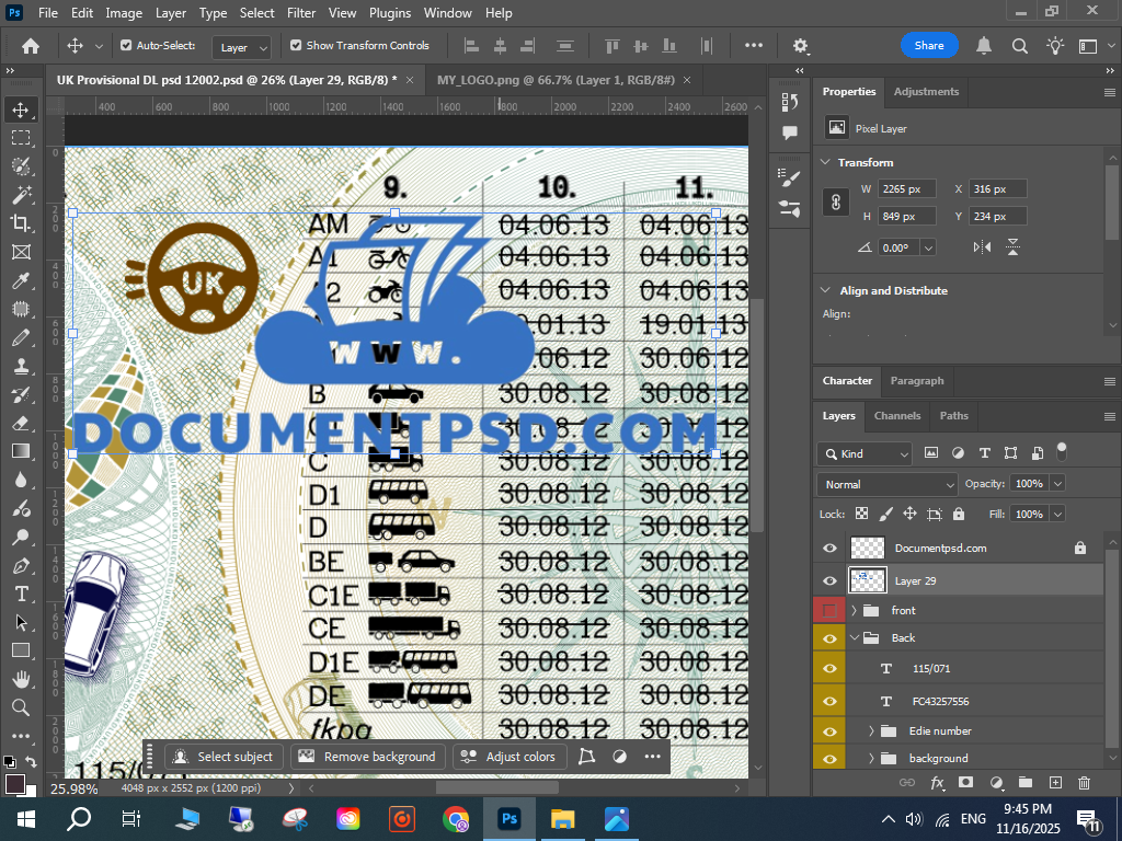 1200dpi UK licence PSD, driver licence graphic template,