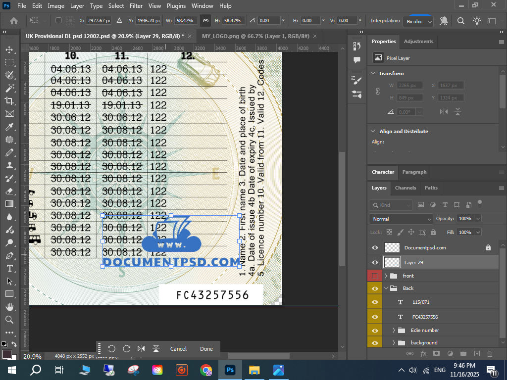 Photoshop UK licence template, UK provisional card template,
