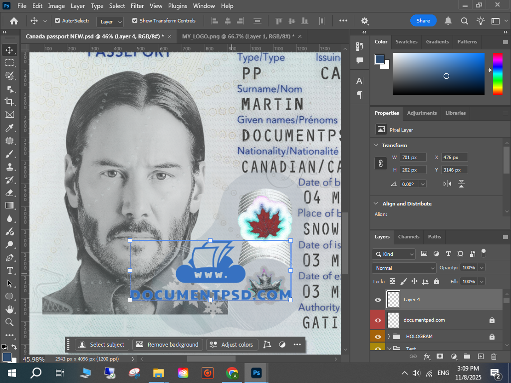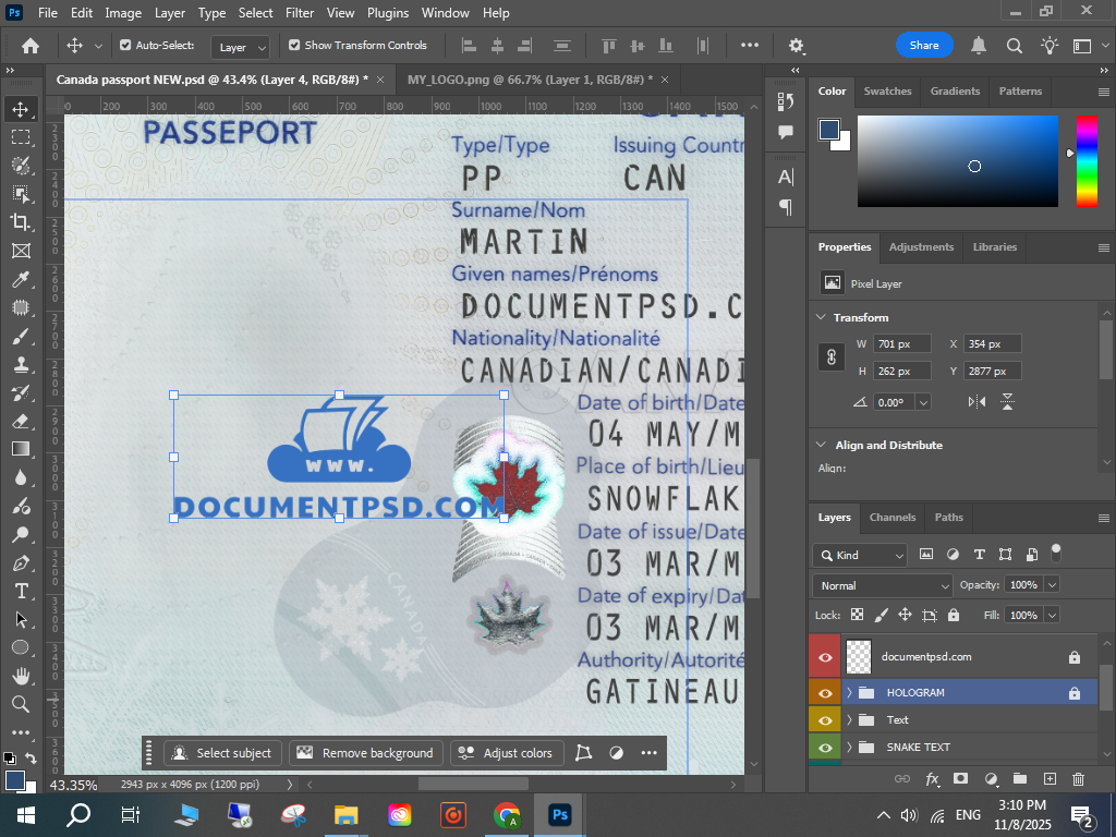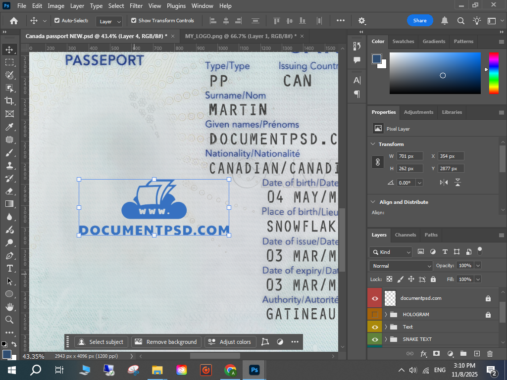 Canada passport 2023 New PSD Template