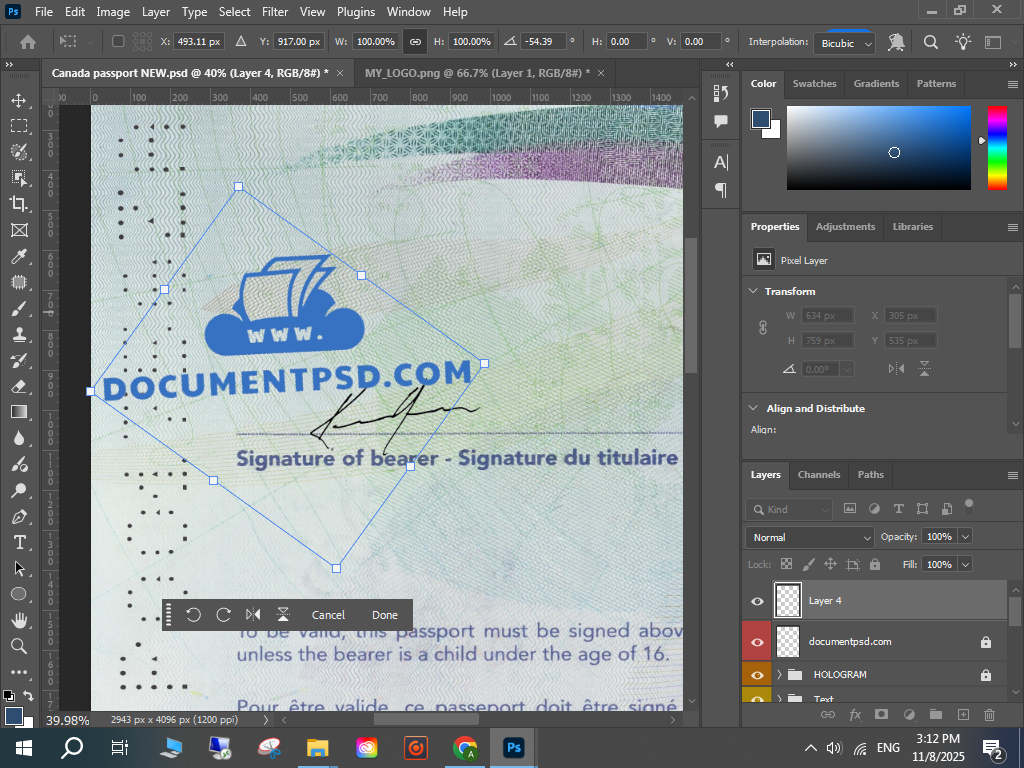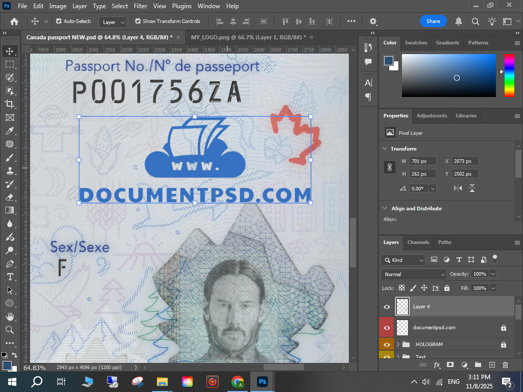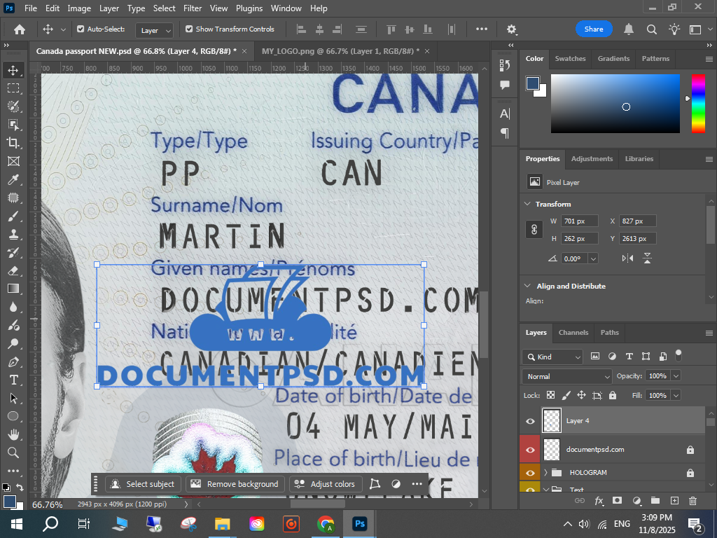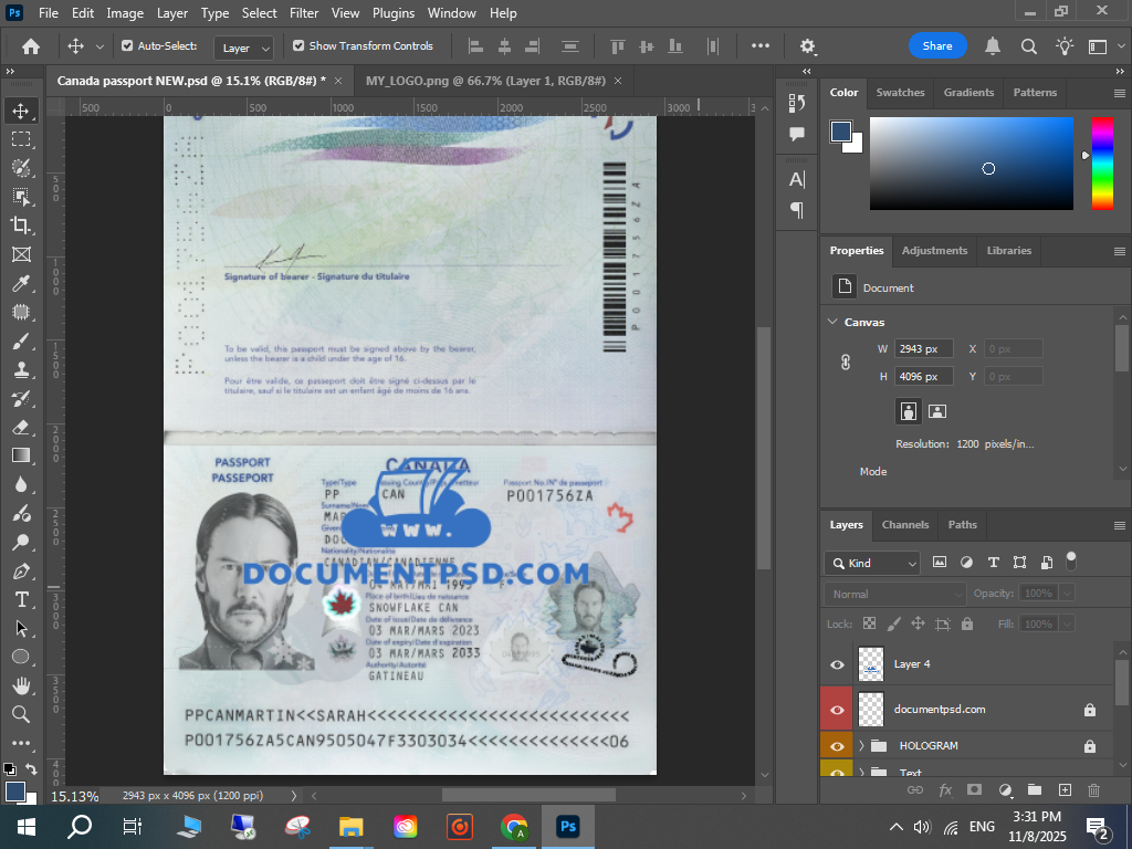• Canada passport 2023 New PSD Template
