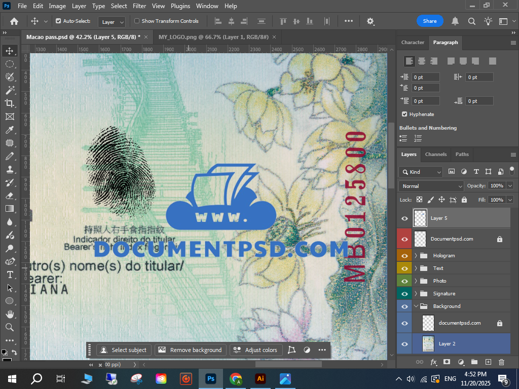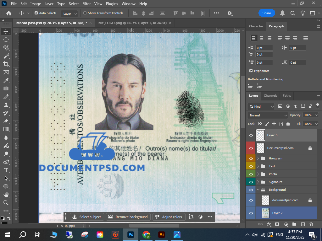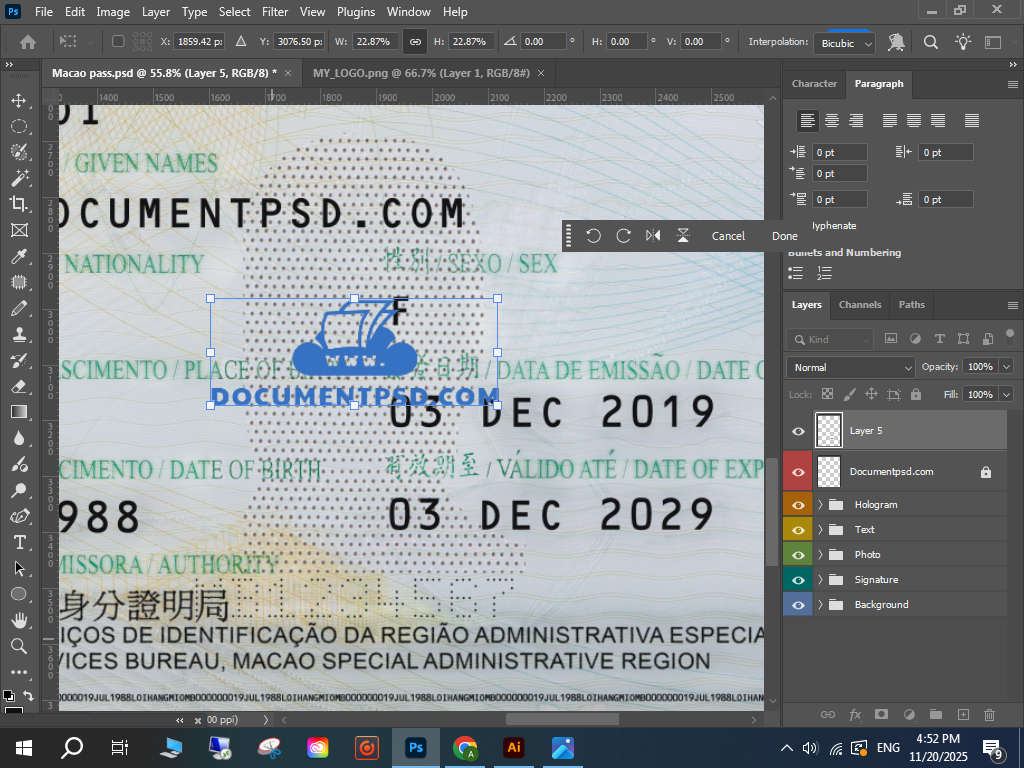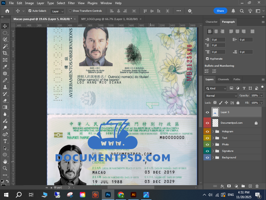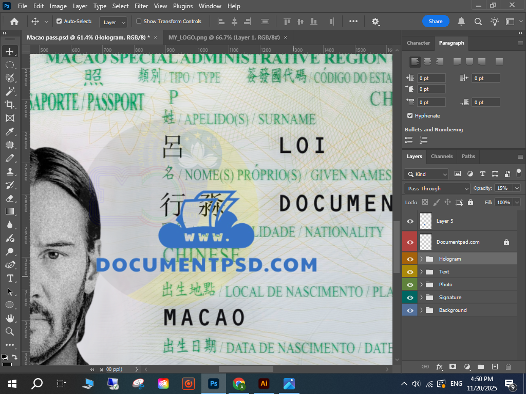 Download the China – Macao SAR Passport New PSD Template (Mockup Edition) designed for graphic designers, Photoshop artists, and digital creators who need a realistic-style passport layout for creative projects, training demos, UI/UX design, or educational illustrations.