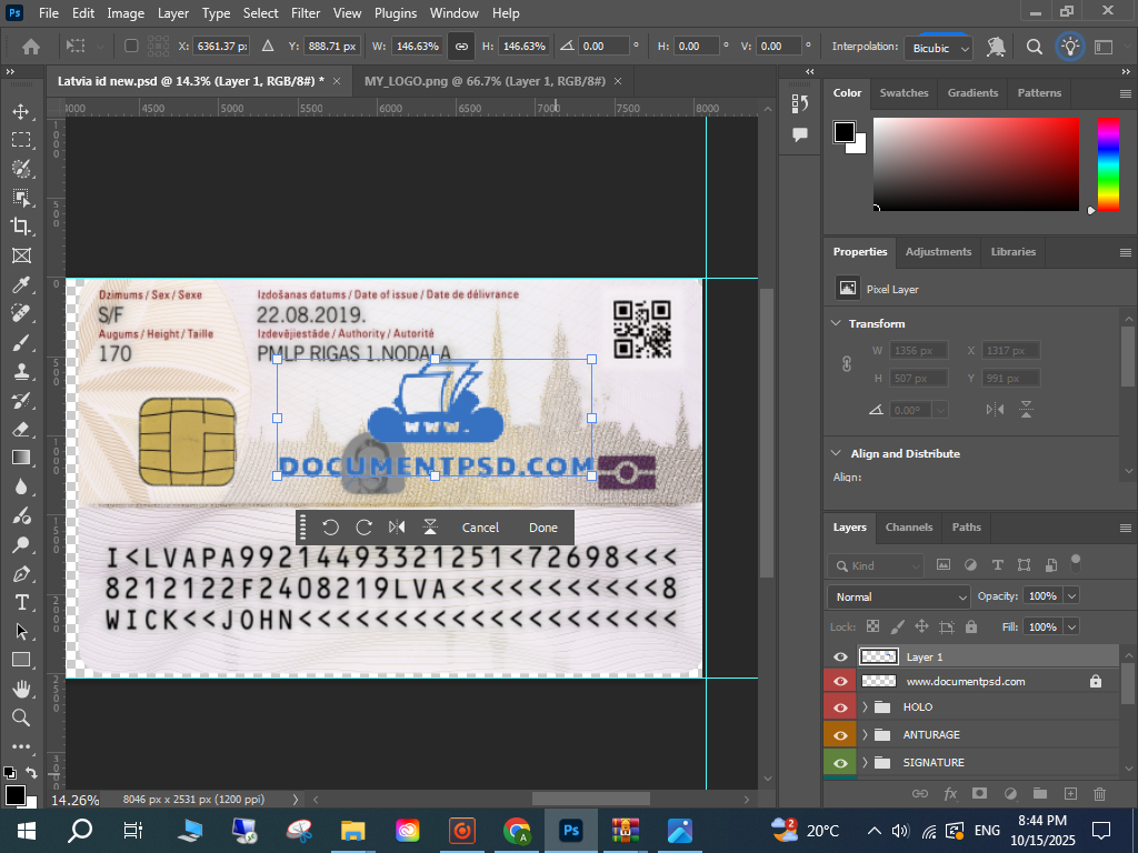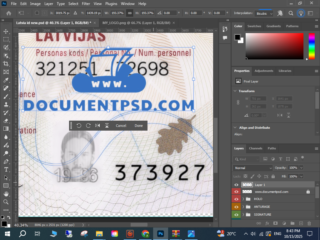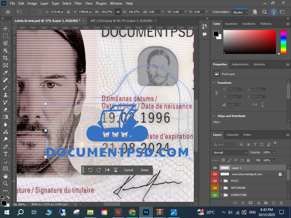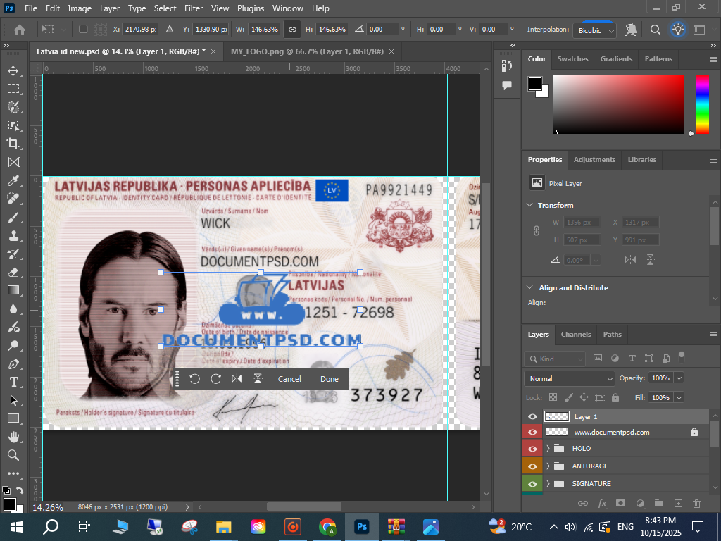 Fully editable Latvia ID Card 2021+ PSD Template in 1200 DPI ultra-high resolution. This template is designed with authentic details and precise layout matching the latest Latvian national ID format. All elements are layered and organized for easy editing in Adobe Photoshop — simply replace photo, text, and signature.