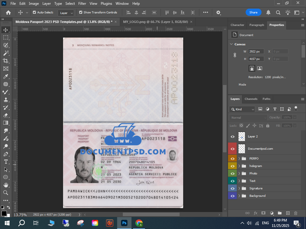 Download the Moldova Passport 2023 PSD Template (Mockup Edition) created for graphic designers, Photoshop editors, and digital creators who need a realistic-style Moldovan passport layout for design demonstrations, UI/UX concepts, educational projects, or creative artwork.