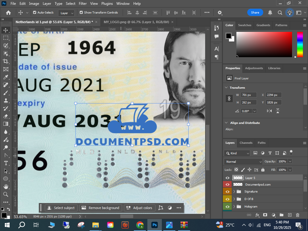 Create realistic, high-quality mockups or design samples with the Netherlands ID Card 2021+ PSD Template, fully layered and 100% editable in Adobe Photoshop.