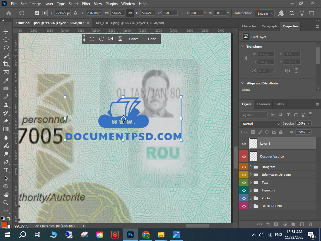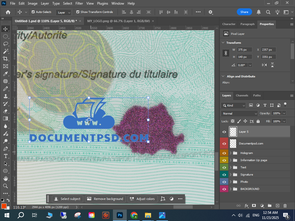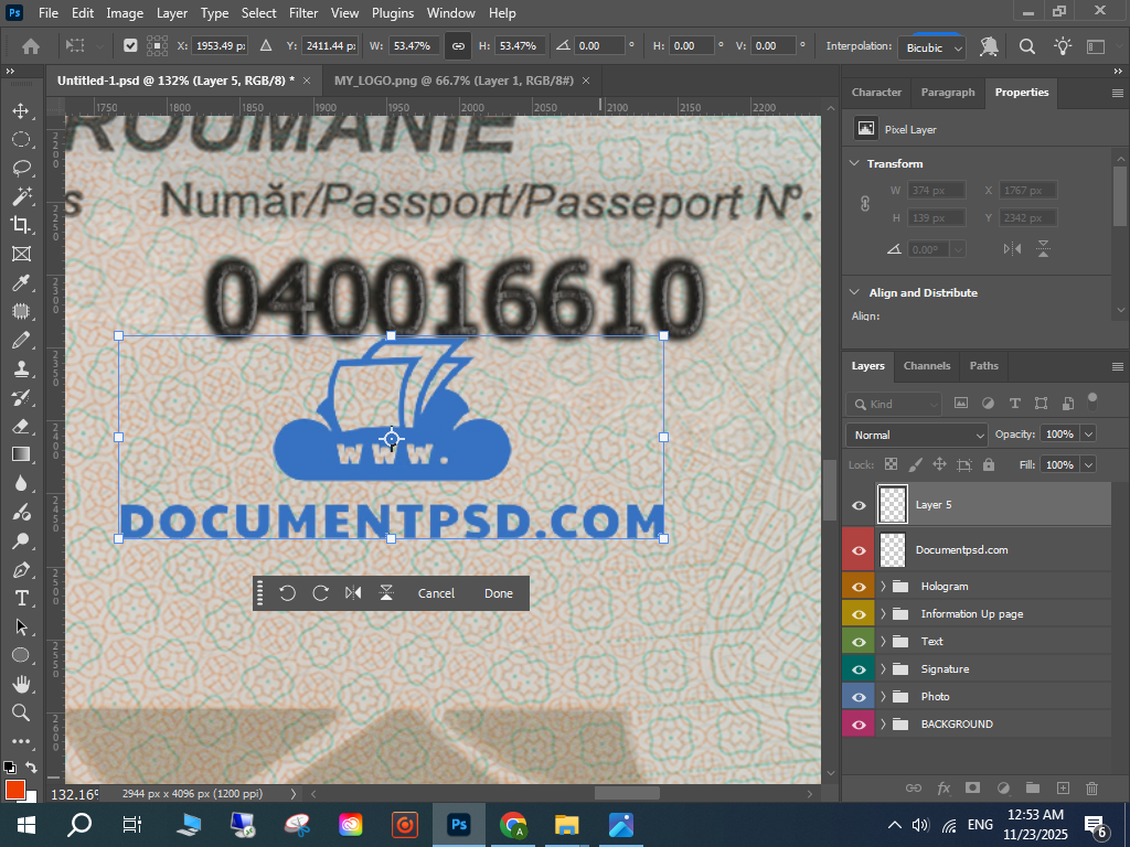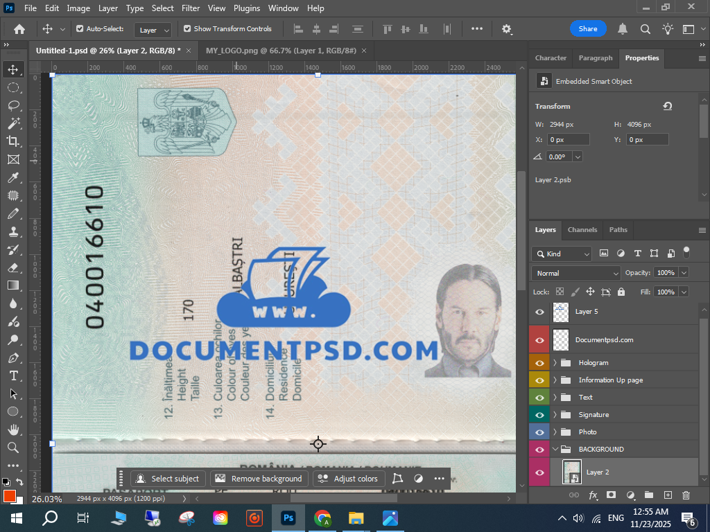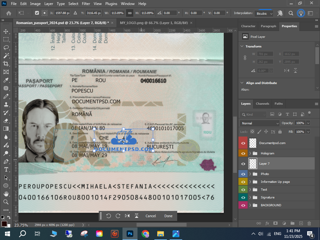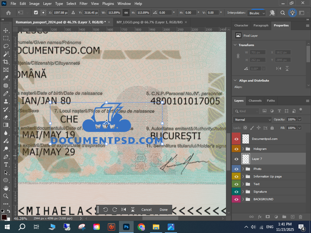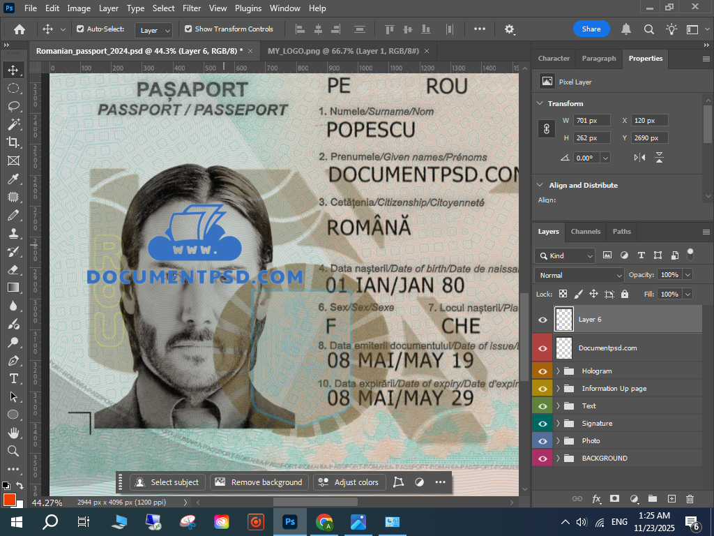 Photoshop Romanian passport PSD,